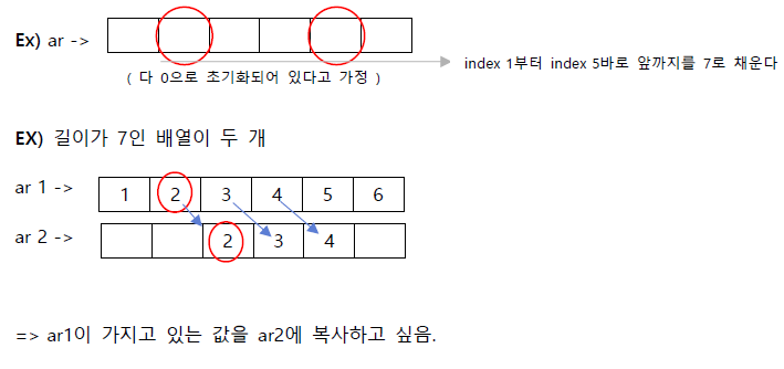 EX) ar -> 특정값으로 초기화를 안해서 다 0으로 저장되어 있다고 가정. 그러면 이 배열이 다 3으로 채워진다 !