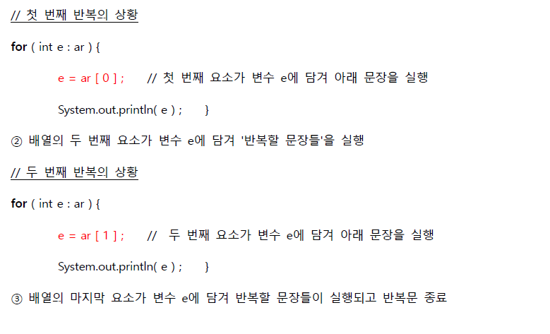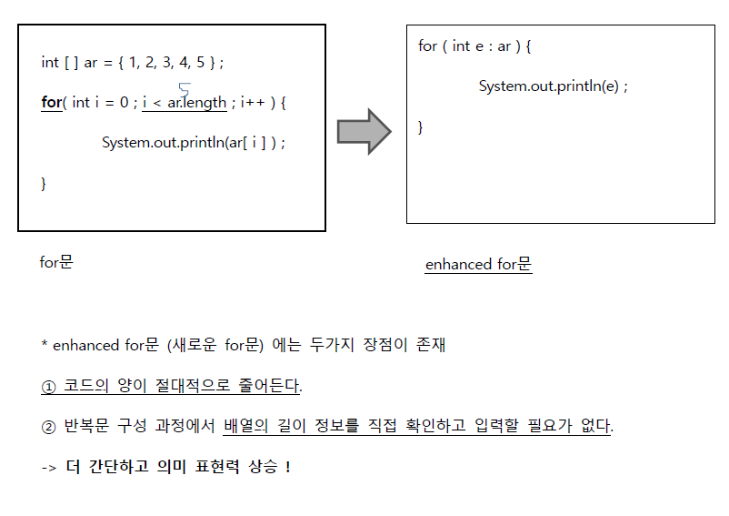 --> 이를 돕기 위해 등장한게 'enhanced for문' (for-each문)