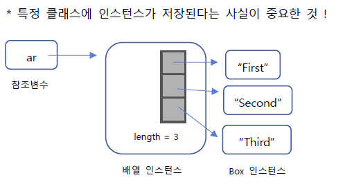 ar[0] = new Box("First"); // Box인스턴스에 문자열을 가지고 있는 것