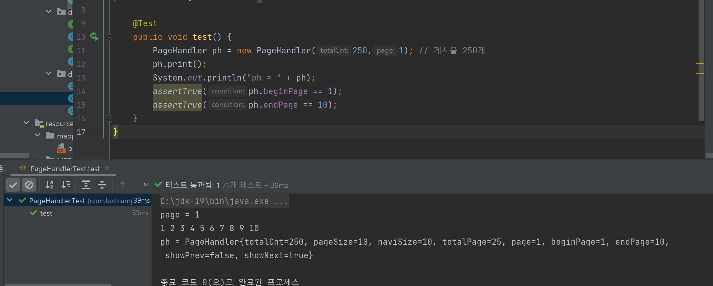 다음으로 테스트 진행을 위해 테스트 클래스 PageHandlerTest생성.
