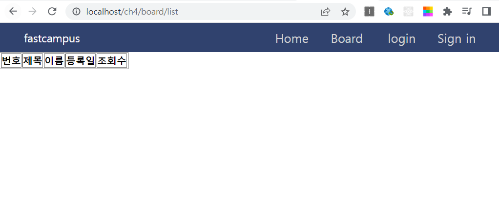 Integer로 수정 후 서버를 재실행한 다음 Board로 이동하니 아까와 같은 서버 에러가 발생하지 않는다.