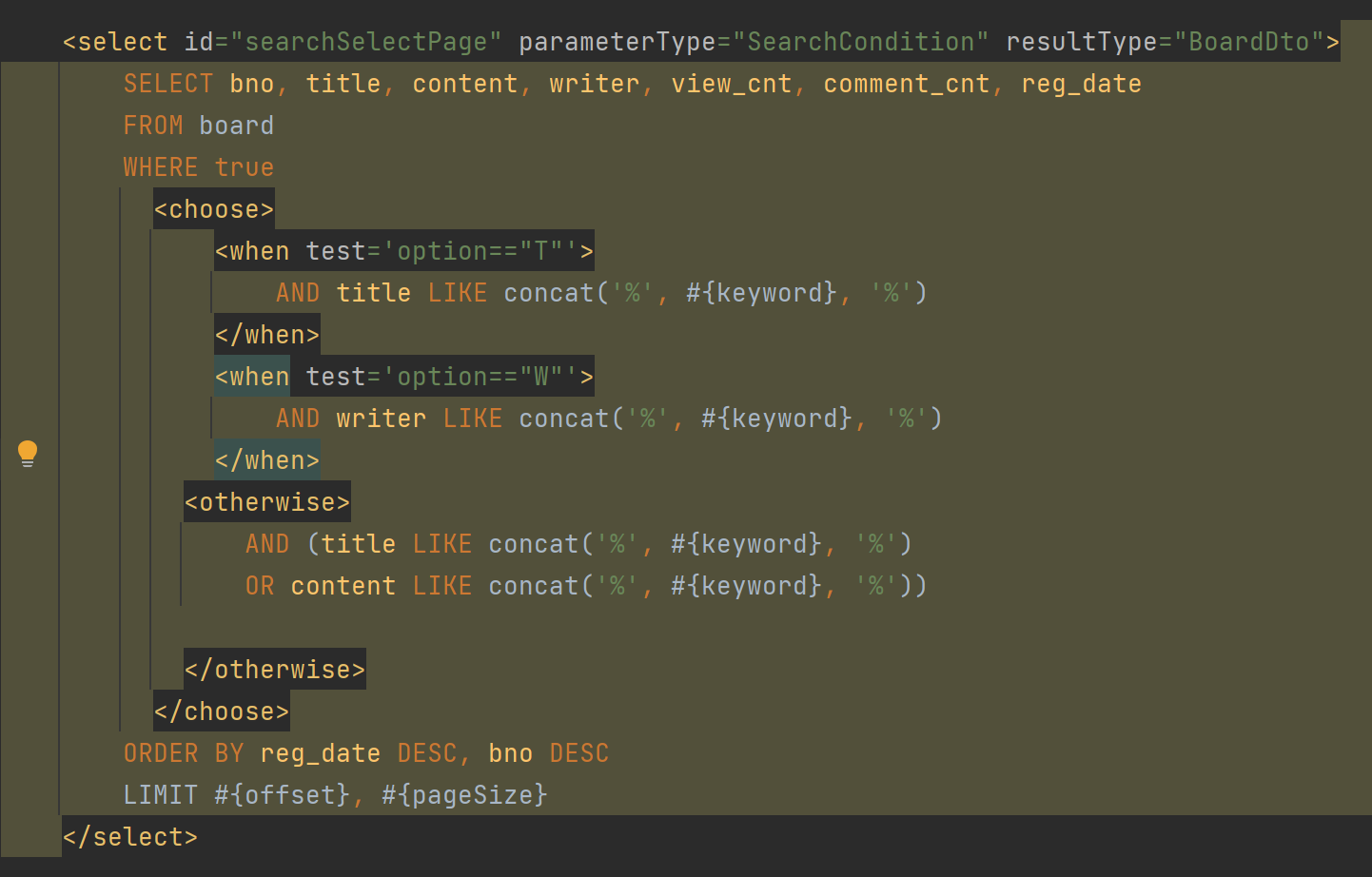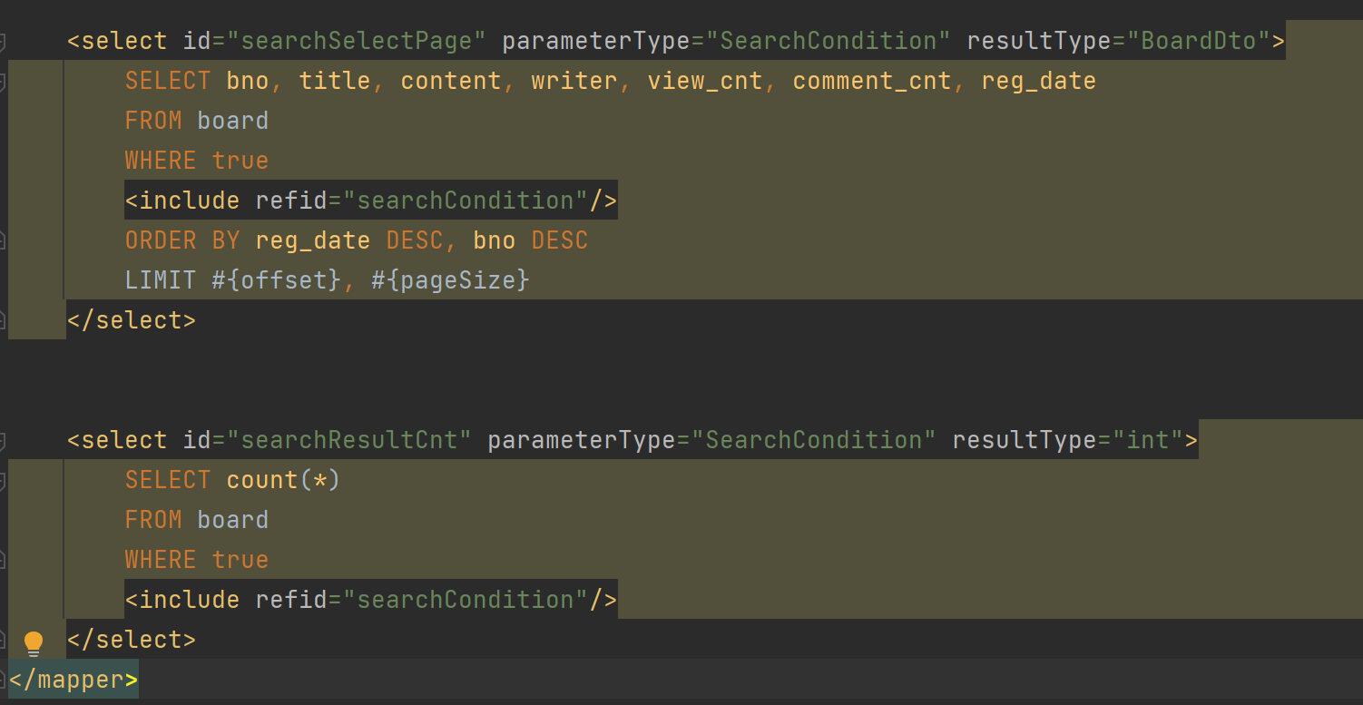 - boardMapper에서 쿼리 작성 - 동적 sql로 만들음<choose>
