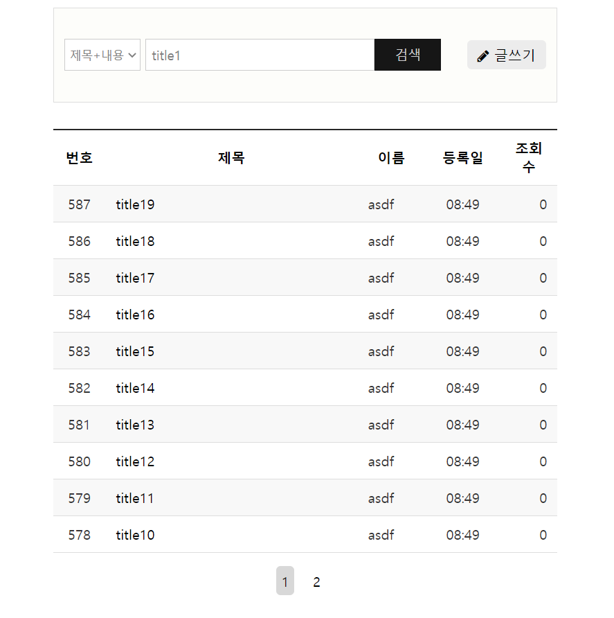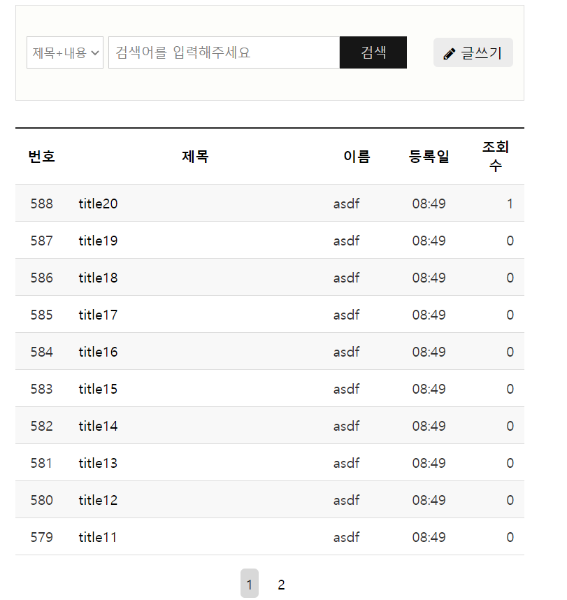 이후 서버를 실행하면 다음과 같은 게시물 목록을 볼 수 있다.