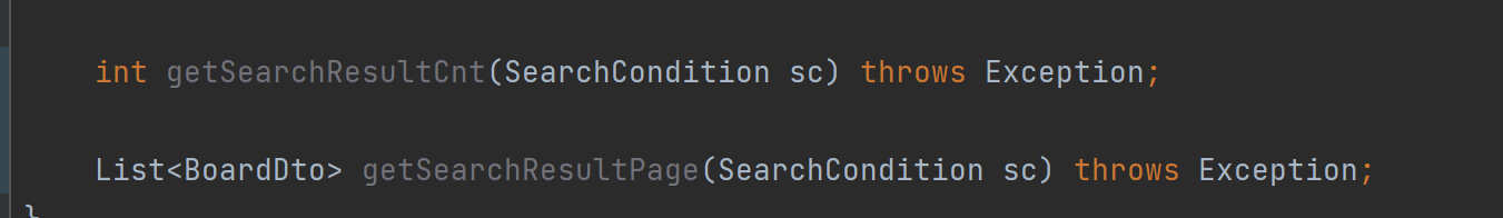 - BoardServiceImpl클래스에 searchsSelectPage를 호출하는 메서드 생성