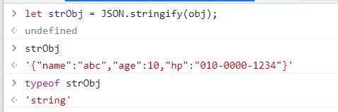 JSON.stringify() - 객체를 JSON 문자열로 변환(직렬화, JS객체 -> 문자열)