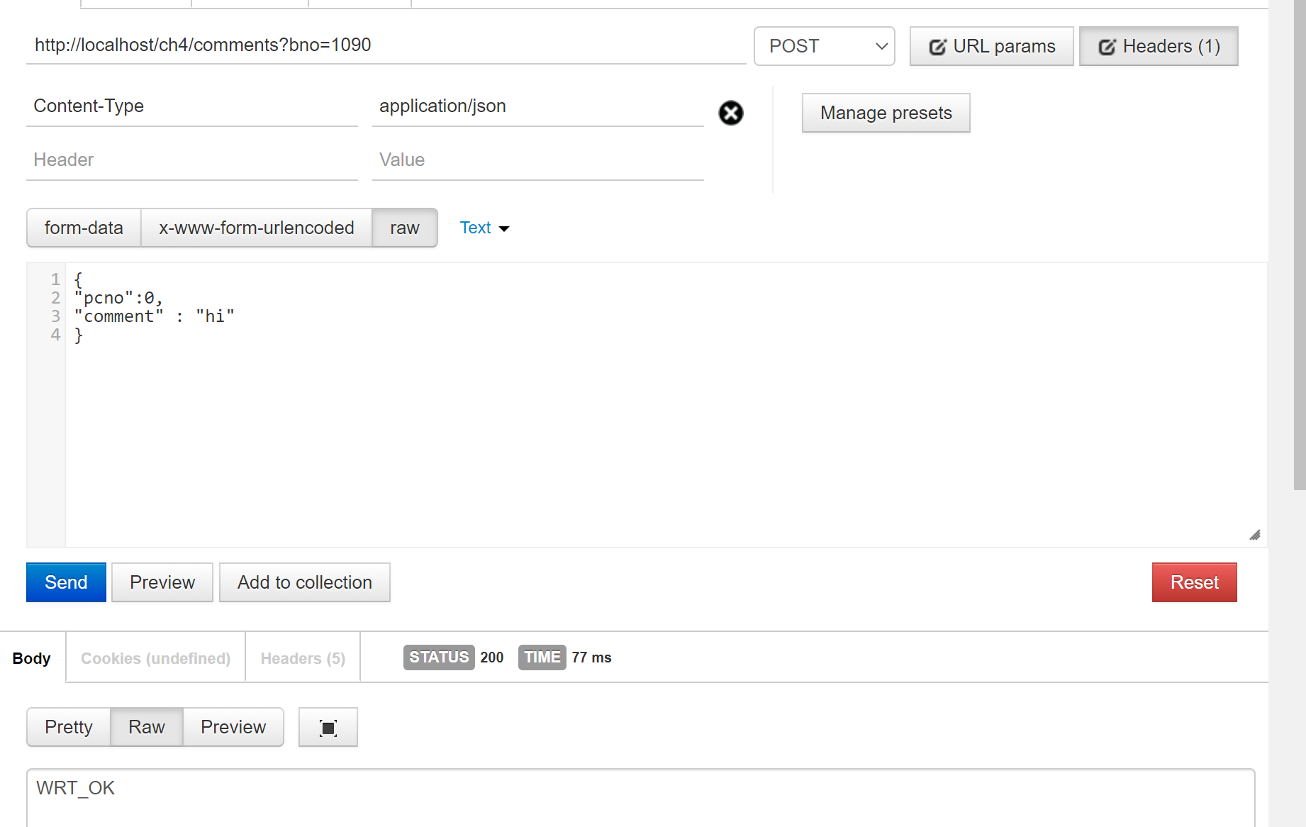 content-type을 application/json으로 지정해서 보내는 타입이 json임을 알려준다.