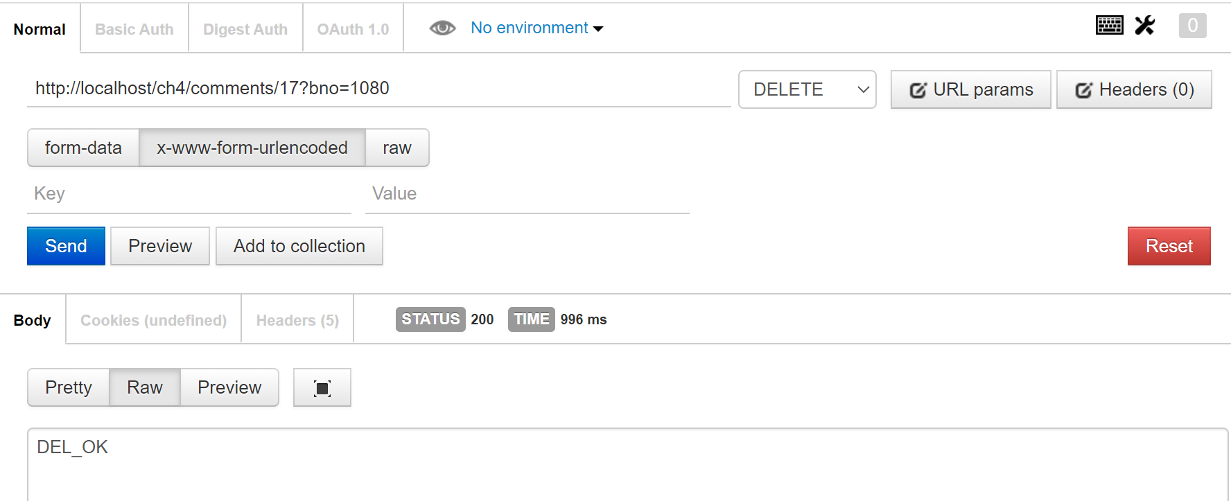 DeleteMapping이라 브라우저로 요청할 수 없으니 Postman사용.
