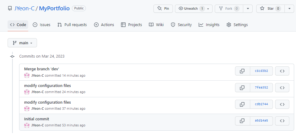 커밋이 추가되어 잘 푸시된걸 확인할 수 있다.