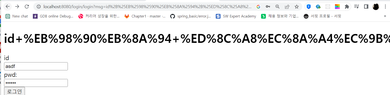 // return "redirect:/login/login?msg=" + msg; // redirect는 GET요쳥 -> GetMapping("/login") 받음