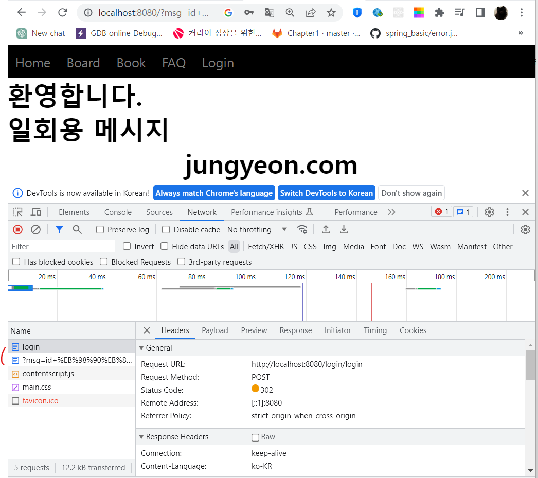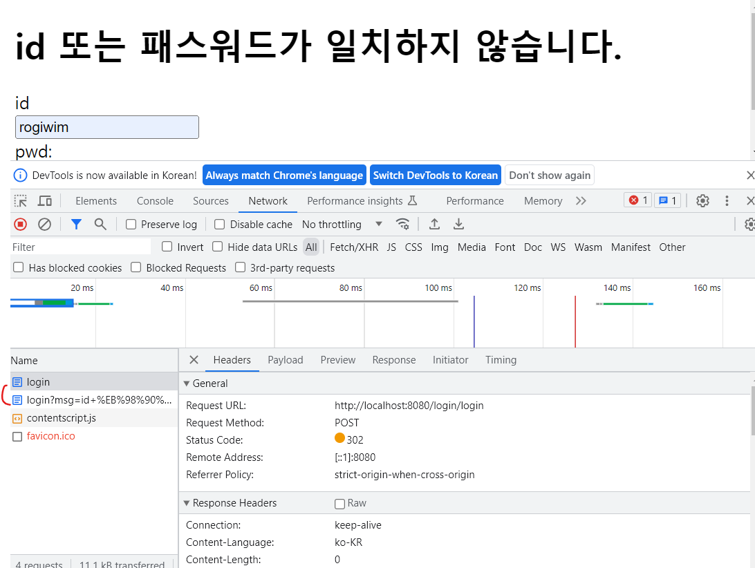 첫 번째 login은 '수동 요청'이 된 것이고, 두 번째 login?msg... 는 브라우저가 '자동 요청'을 수행한 것이다.
