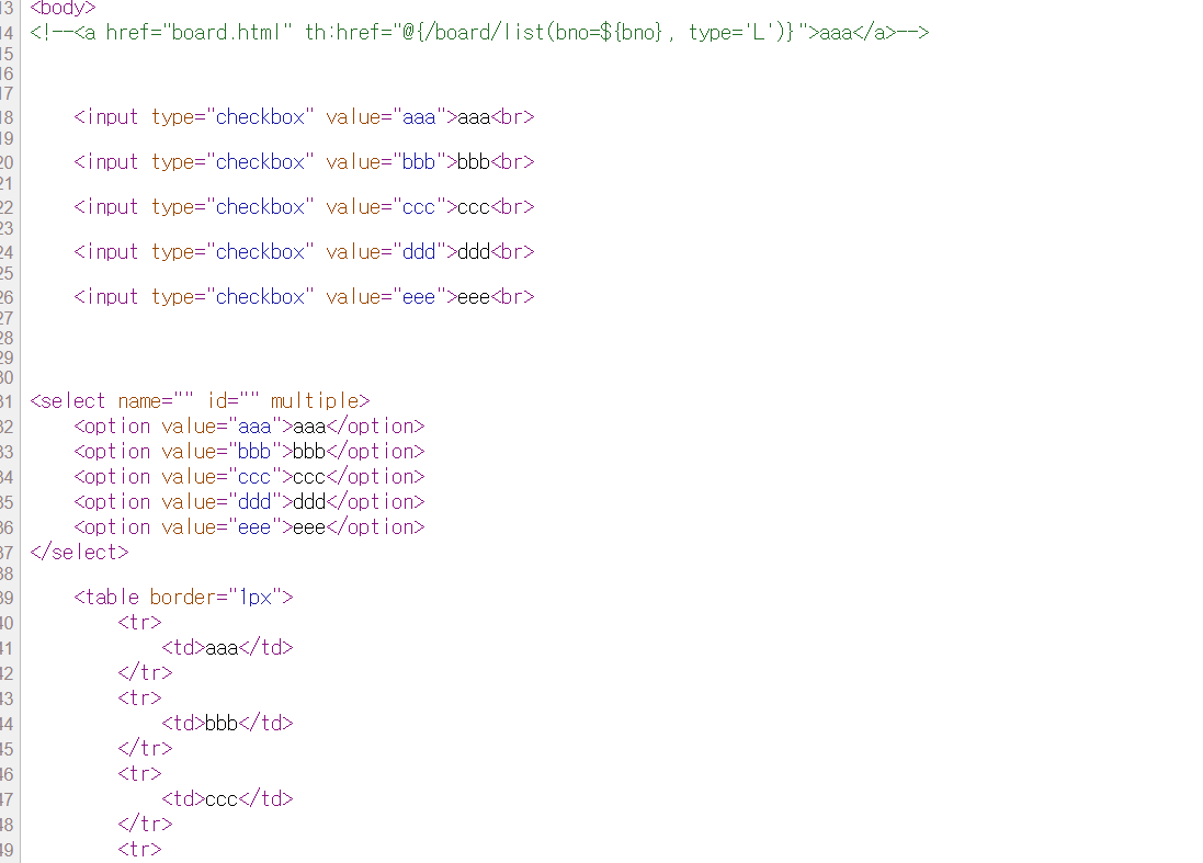 JSP 같은 경우에는 이런식으로 태그 사이에 처리될 부분을 적는데, 이것보다는 타임리프처럼 속성으로 처리하는게