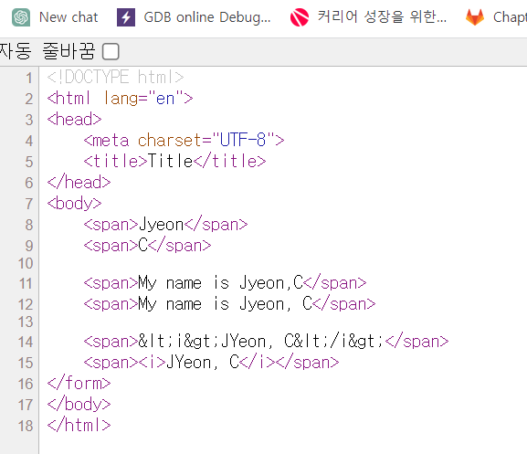 그래서 해당 내용이 그대로 들어가게 된다. 브라우저에 의해 태그로 간주 가능.
