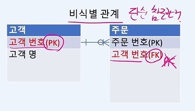 다른 엔티티의 PK가 되는 경우 -> '식별 관계'